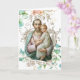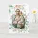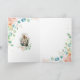 Esta es una encantadora imagen católica tradicional de San José y el Niño Jesús con un cartel JESÚS EN EL QUE CONFÍO. Un bonito diseño floral de melocotón y eucalipto verde claro adorna el fondo. La misma imagen está en el interior izquierdo de la tarjeta.