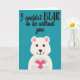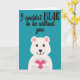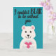 Esta linda tarjeta de felicitación de San Valentín presenta a un adorable oso blanco personalizado sosteniendo un corazón rosado sobre un fondo azul claro con una divertida leyenda de juego de palabras que dice "No podría soportar estar sin ti". Ideal para El día de San Valentín, u otras ocasiones importantes como aniversarios o cumpleaños.