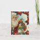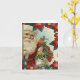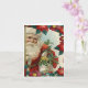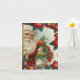 Vintage illustration of Santa Claus bringing gifts and presents for Christmas, decorated with holly berries and poinsettias. Text inside: Merry Christmas & Happy New Year. Personalize by adding your own text.