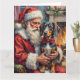 Tarjeta Santa Claus Holding Bluetick Coonhound Christmas
