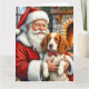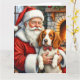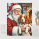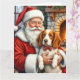 Tarjeta Santa Claus Holding Brittany Spaniel Christmas Art