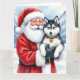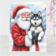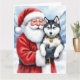 Tarjeta Santa Claus Holding Siberian Husky Christmas Art