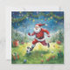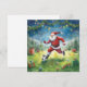 Tarjeta Santa Claus juega al fútbol en el campo de los Nav