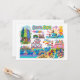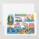 Tarjeta Santa Cruz Illustrated Map Boardwalk Beach Surfing