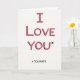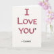 This card shows the words “I LOVE YOU*” centered on a simple off-white background, with big hand-drawn letters outlined in black and filled with pink and fuchsia stripes like marker strokes. A soft dark shadow sits behind the letters, making the main line stand out a bit from the page. The little asterisk right after “YOU” hints that there’s more to the message. Underneath, in smaller black sans-serif lettering, a footnote reads “* TOLERATE,” placed neatly below the main phrase. The mix of sweet color and the dry footnote turns it into a funny, honest note about sticking with someone even when things aren’t perfect 🥰. It can feel meaningful for a partner or close friend because it says “I care” without pretending every day is a movie moment ❤️. It’s a good choice when you want to share Valentine’s Day sentiments in a real, affectionate way.