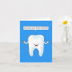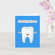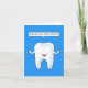 Un personalizado de un diente parlante con un fondo de color azul brillante. El diente dice 'deseándote una rápida recuperación'.