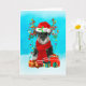 Tarjeta Schnauzer en la nieve con regalos de Navidad
