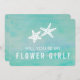 Incluya a su niña de las flores en la emoción de la boda con esta hermosa tarjeta. El diseño presenta dos estrellas de mar blancas contra un fondo aireado de trazos de acuarela turquesa. ¡Perfecto para bodas de playa o de destino! Accesorios coordinados disponibles en nuestra tienda.