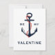 Tarjeta de San Valentín con un ancla azul marino y corazones rojos formando una cuerda