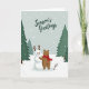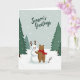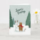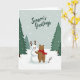 At the top, the words "Season's Greetings" are beautifully written elegantly. A twig on the snow adds a natural touch. The color scheme mixes cool blues and greens with the bear's warm brown and red scarf, making a festive color combination. This card is perfect for spreading holiday cheer! 🎅🏼🎄🎁