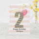 Una tarjeta chica de 2º cumpleaños rosa y dorada, que puedes personalizar con su nombre. La parte delantera de esta hermosa tarjeta de segundo cumpleaños para ella muestra el número dos en una franja blanca y negra con un contorno de purpurina con un globo rosa listo para flotar. Tenga en cuenta que el purpurina de oro es un efecto de diseño y no habrá ningún purpurina real en esta tarjeta de cumpleaños. El fondo es un blanco suave y rosa con un banner de afinado dorado en la parte superior.El mensaje interno se puede personalizar fácilmente si lo desea. Una tarjeta de segundo cumpleaños de bonito para ella.
