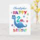 ¡Una tarjeta especial de 2º cumpleaños! Esta divertida y brillante tarjeta de segundo cumpleaños incluye un dinosaurio azul, algunas estrellas del bonito y texto colorido. Un diseño lindo para alguien que tendrá dos años. Añada el nombre del hijo de segundo cumpleaños al frente de la tarjeta al personalizar del niño o chica especial. A continuación, cambie el mensaje interno para personalizarlo.