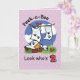 Una imagen preciosa de un gatito jugando al peek-a-boo. Una tarjeta punteada rosa perfecta para enviar a un chica que cumple dos años.