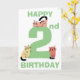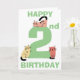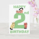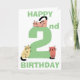 Bonita y divertida segunda (2ª) carta de cumpleaños con un gran número dos en el color verde. Un gatito de garrapatas está sentado encima del número y dos gatos gatitos de garabatos están sentados en la base del número, cada gato es único con un color diferente y en una posición diferente. Encima y debajo de los gatos están las palabras Happy (en la parte superior de la tarjeta) y Birthday (en la parte inferior de la tarjeta) en texto verde. Dentro de la tarjeta encontrarás aún más gatos lindos con una plantilla para añadir tu mensaje de cumpleaños y finalmente otro gato doodle en la parte posterior de la tarjeta.