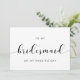 Una tarjeta de regalo simple y minimalista para escribir un mensaje personal y sincero para tu dama de honor el día de tu boda. Totalmente personalizable con tus colores favoritos (texto y fondo). Puedes agregar un mensaje en la parte posterior, o dejarlo en blanco si prefieres escribir tu mensaje a mano más tarde.