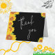 ¡Carta de agradecimiento con temática de girasol con fondo negro! Nuestro diseño incluye girasoles naranjas pintorescos, colocados sobre un fondo negro para crear este arreglo de otoño o de estilo rústico. Tarjeta de agradecimiento simple pero elegante que se puede usar para bodas o cualquier ocasión.