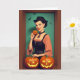 Tarjeta Señora Retro Feliz Halloween con Calabazas