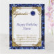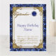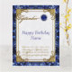 Diseño de una tarjeta creativa con un color de oro azul Sapphire y un tema de diseño Damask con una variedad de imágenes, formas, patrones, estilos y fuentes personalizados en esta tarjeta de bienvenida de cumpleaños "September Sapphire". Este elegante y atractivo diseño se completa con letras de personalizable en la parte delantera y en el interior para que se adapten a su propio saludo especial de cumpleaños. ¡Qué manera perfecta de decir "Feliz cumpleaños" a alguien especial en tu vida este setiembre!