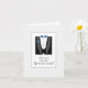 Tarjeta ¿Serás mi Groomsman? Tux con azulejos azules
