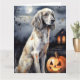 Tarjeta Setter Inglés de Halloween con Calabazas Espeluzna