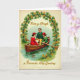 This card shows a vintage-style scene of a small wooden boat gliding across calm turquoise water, carrying three well-dressed friends close together 💚. A man in a green jacket and bright yellow trousers holds a paper and leans in with a gentle smile toward the woman beside him, as if sharing a private joke or sweet note. She wears a scarlet dress with a matching cloche hat and looks down at the page, her posture relaxed and comfortable next to him. On the other side, a second woman in emerald green steadies a paddle, her red hat echoing the other woman’s and her calm expression keeping the moment cozy and unhurried. Around the scene, a curved border of green shamrocks and small golden-yellow flowers forms an arch, like a leafy doorway framing the trio ☘️. The phrase “Erin go Bragh” appears at the top in gold lettering, while “A St. Patricks Day Greeting” sits along the bottom in matching gold text. Behind everything, the background is a warm, creamy tone, and the water is drawn with soft ripples under the boat.