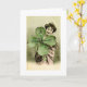 Esto es una imagen de una postal francesa del vintage para el día de St Patrick. Ofrece a una señora joven bonita que soporta un trébol muy grande de la cuatro-hoja. ¡Ella mira como ella está para arriba para una cierta diversión! ¿Dentro de la tarjeta dice simplemente, "cuándo los shenanigans comienzan? El día de St Patrick feliz!"