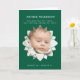 Celebrate the life of your precious child with this "Shining Star" Funeral Order of Service card. The deep emerald green cover displays a radiant flower-like frame, perfect for showcasing a beloved photograph of your little one. Below the photo, a tender quote, "Too precious for earth, now shining among the stars," offers solace and remembrance. Inside, the order of service is thoughtfully laid out to include all the essential elements of a memorial, such as hymns, readings, eulogy, and prayers. This card serves as a beautiful and functional memento, ensuring that the light of your child's memory continues to shine brightly. Honor their brief, beautiful life with this elegant and comforting design.