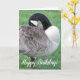 Alentar a alguien a celebrar en su cumpleaños con esta tarjeta de saludo que muestra la imagen de una gansa canadiense escondiendo su cara en sus plumas. Seleccione una tarjeta de estilo mate o brillante.