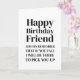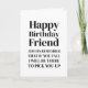 Celebra el cumpleaños de tu amigo con una risa. Esta tarjeta divertida presenta un diseño elegante, en blanco y negro con una tipografía llamativa.