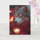 Crea un ambiente acogedor en el día de San Valentín con este impresionante diseño de Siberian Husky. Con el perro descansando en una manta roja con una almohada de corazón de peluche, rodeado de velas encendidas y pétalos de rosa, esta obra de arte hace una tarjeta o regalo conmovedor para los amantes de los perros.