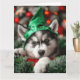 Tarjeta Siberiana de Navidades Husky Elf Puppy