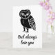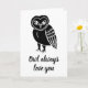 Esta dulce tarjeta presenta una ilustración de un búho con las palabras "Siempre te amaré" en la parte delantera. El interior dice "Te amo y te agradezco más de lo que sabes" que se puede quitar o personalizar.