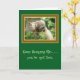La ardilla se aferra al alimentador de alambre de malla con todo lo que tiene. ¡Y lo que tiene es determinación! Texto frontal: "Sigue aguantando... tienes esto". Texto interno: "Las cosas mejorarán pronto". El texto es personalizable. Enviar a un amigo que necesite algo de aliento.