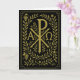 Tarjeta Símbolo Chi Rho Alpha Omega dorado sobre negro