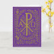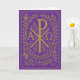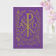 Tarjeta Símbolo dorado Chi Rho Alpha Omega sobre violeta