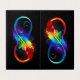 Símbolo de infinito dibujado artísticamente con una hermosa pluma arco iris sobre fondo blanco. Estilo tatuaje.