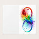 Símbolo de infinito dibujado artísticamente con una hermosa pluma arco iris sobre fondo blanco. Estilo tatuaje.