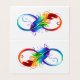Símbolo de infinito dibujado artísticamente con una hermosa pluma arco iris sobre fondo blanco. Estilo tatuaje.