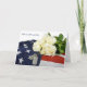 Etiquetas de perro militares y ramo de rosa blanco en una bandera estadounidense por muerte militar.