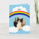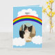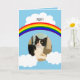 Esta tarjeta de simpatía mascota muestra un arco iris en el cielo rodeado de nubes. En el centro de la tarjeta, es un lugar para una foto. También puede personalizar la tarjeta con el nombre del mascota. Dentro de la carta, hay un verso creado con amor para un dueño mascota. Palabras y diseño Copyright peachesthetuxedocat