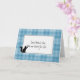 Silueta de un gato sobre un patrón de cuadros azules para simpatía por la pérdida de una mascota.
