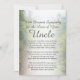 Una hermosa y reconfortante tarjeta conmemorativa de simpatía con un poema diseñado para ayudar a curar un corazón afligido. Personalizar con su propio mensaje si lo desea. Puedes personalizar fácilmente el poema, la persona que te rinde homenaje, el título e incluso la imagen de fondo.