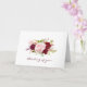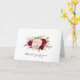 Este diseño floral presenta un ramo acuático de flores rosas y de marsala, encima de las palabras "pensando en ti" en escritura a mano de marsala. En el interior, el texto "con profunda simpatía" aparece en la correspondencia del guión de marsala, o en el personalizar con su propio mensaje personalizado.