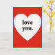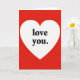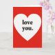 This greeting card shows a large white heart centered on a deep red background, keeping the focus on love right away ❤️. Inside the heart, the words “love you.” sit near the middle in simple black letters with a soft shadow that gives them a little depth. The small period at the end makes the message feel steady and sure, like you really mean it. With just red, white, and black, the design feels calm and direct, without distractions. The heart shape and strong color contrast make it easy to read from a distance and hard to forget. It’s a meaningful card to give when you want to say something honest, whether it’s for a partner, a close friend, or someone you care about 🥰. The simple layout leaves room for your own note inside, so the message can feel even more true to you.