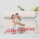 La tarjeta fotográfica festiva incluye tu foto horizontal o paisajística favorita en todo el sangrado, con "Feliz Navidad" colocada en la tipografía de pincel con letras rojas. Personaliza con tus nombres y el año que pasa abajo. Las tarjetas cambian a un patrón de confeti blanco sobre un color de fondo coordinado y completamente personalizable.