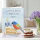 This charming watercolor and pen illustration features a Painted Bunting enjoying a slice of carrot cake, a nod to February’s National Carrot Cake Month, with a soft iris flower thoughtfully styled as a birthday candle holder. The iris, a traditional February birth flower, adds a meaningful seasonal detail. Together, these February-inspired elements create a warm, artistic birthday card perfect for celebrating someone born in this quiet winter month.