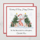 Esta tarjeta de Navidad es adecuada para un chica en sus Navidades primero, segundo o tercero. El diseño incluye un contorno de borde rojo, copos de nieve azul claro, árboles de acuarela navideños, dulces, regalos y muñecos de nieve.