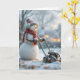 Tarjeta Snowman de cumpleaños lanza una cortadora de céspe