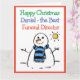 Tarjeta de Navidades del director funerario. Feliz Navidad a un director funerario. Divertido personalizado de un muñeco de nieve bajo el sol invernal. Añadir un mensaje del remitente.