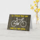 This silly birthday card design features a silhouette of a bicycle on a faux wood look background, along with the message "So I heard that you want a new bike...". The inside features the message "I hope that somebody else has gotten you one! Happy Birthday!". This might be a silly birthday card to give to somebody who likes biking and who wants a new bike.